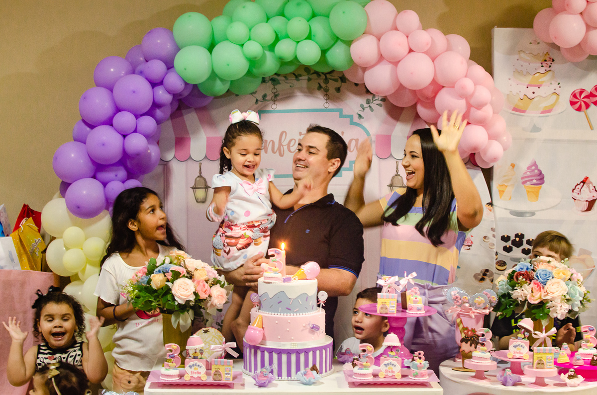 Foi uma festa para a família e amigos mais próximos, a Stella estava toda boba com o tema da festa e só queria ficar no painel, estava encantada com tudo.