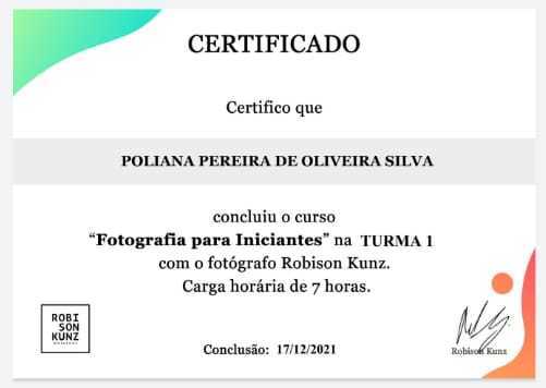 Estes são os certificados dos cursos que eu fiz para eu me tornar uma fotógrafa.